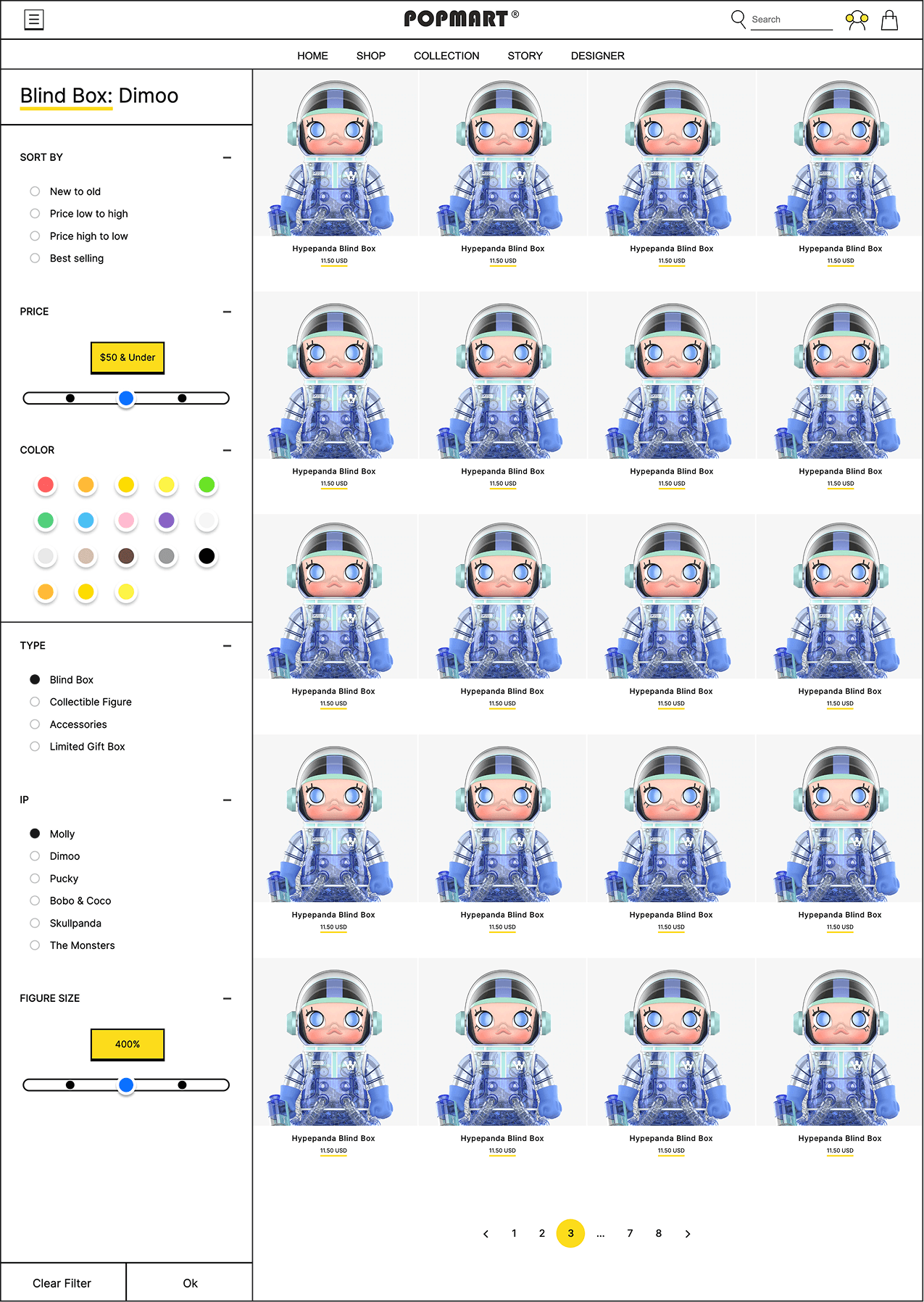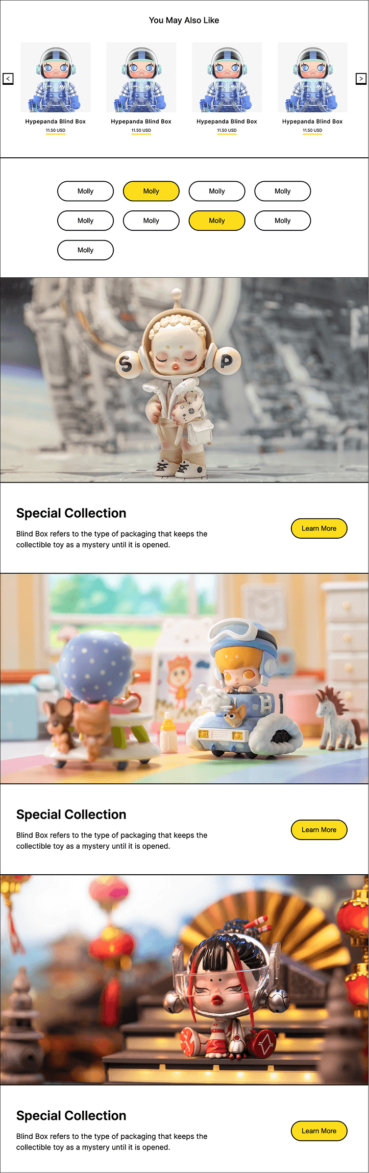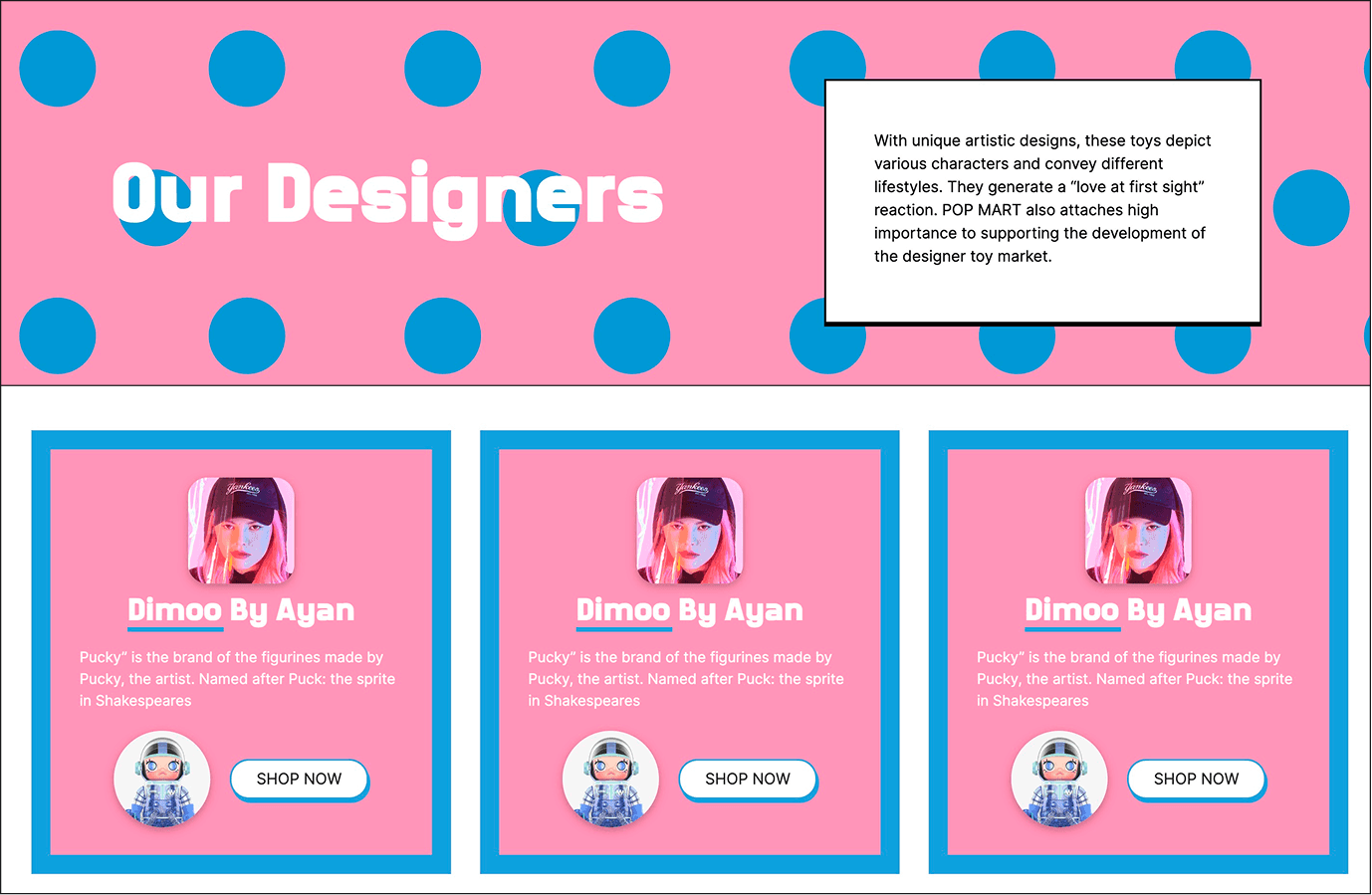 A web redesign and web-development project that brings focus to POPMART’s product storytelling through clean layouts, neutral tones, and balanced visual hierarchy.
