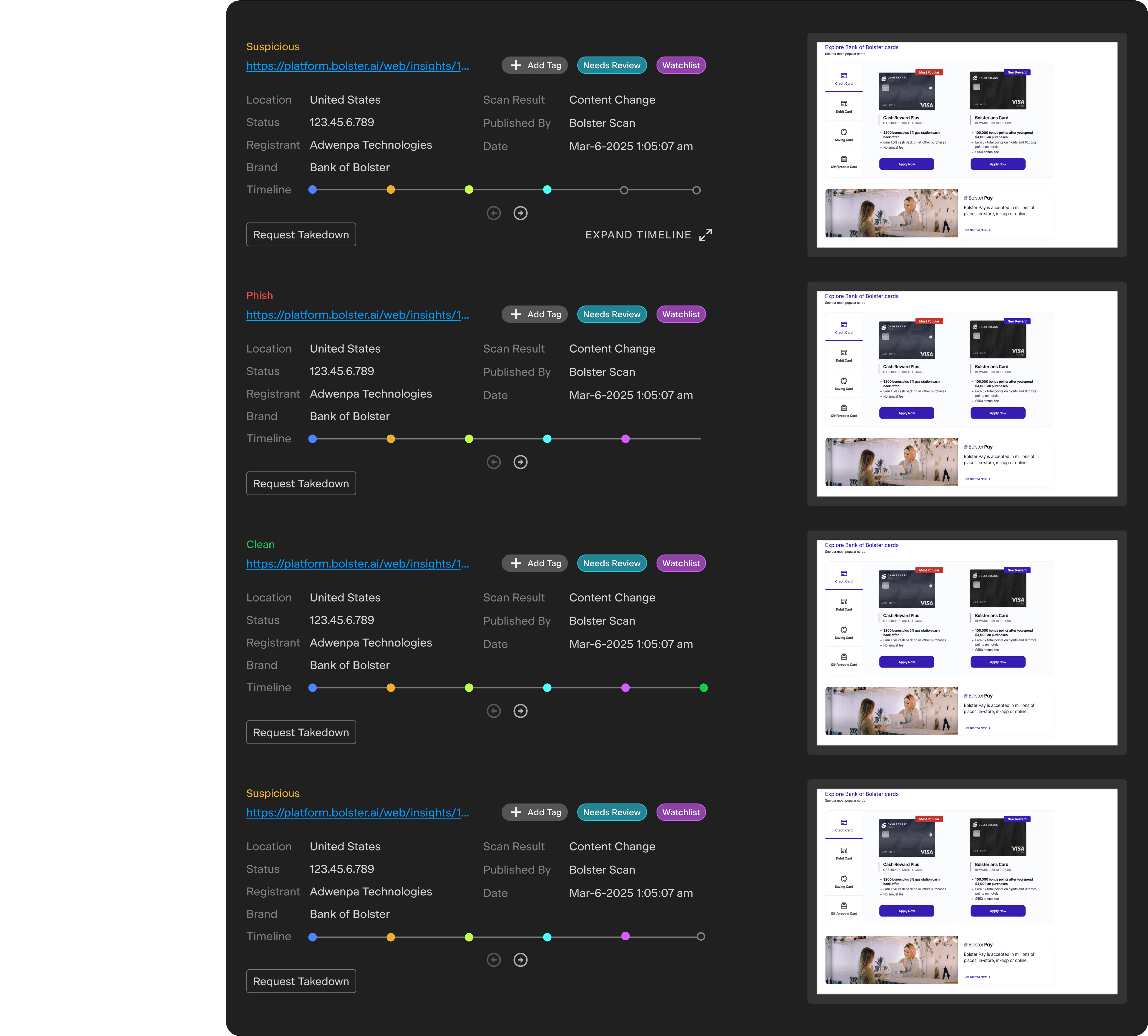 Takedown threats immediately, track the takedown speed and progress of treats, “tagging” to stay organized (T)